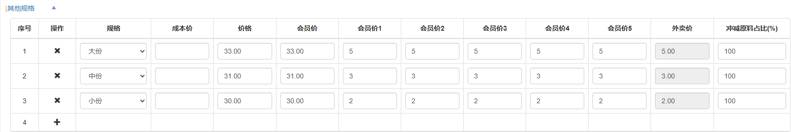 此处主要显示其他规格:例如大份、中份、小份等信息;
