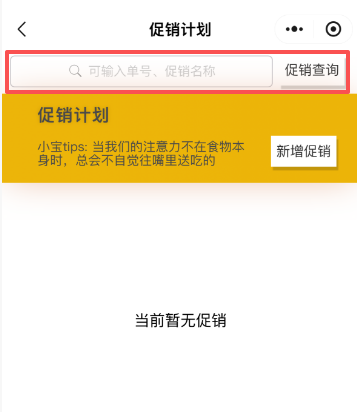 可以输入单号或者促销名称查询促销计划。