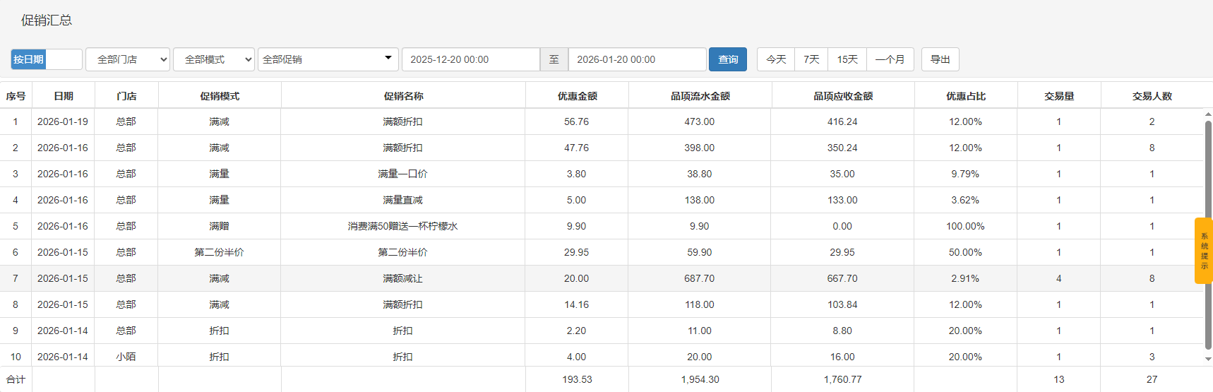 目录 搜索 美食家3·学习指南美食家3·后台管理系统概述一、使用须知二、登录说明三、开店向导四、后台首页五、集团档案5.1、基础信息5.1.1 品牌管理5.1.2 品项类别5.1.3 品项单位5.1.4 品项档案5.1.5 口味档案5.1.6 品项口味5.1.7 加料档案5.1.8 品项加料5.1.9 品项规格5.1.10 品项推荐5.1.11 品项部位5.1.11.1 后台品项部位参数配置5.1.11.2 品项部位厨打参数设置5.1.11.3 前台品项部位点餐5.1.11.4 品项部位厨打小票打印5.2、店铺管理5.2.1 门店区域5.2.2 门店管理5.2.3 店组管理5.2.4 桌位管理5.2.5 门店品项管理5.2.6 店员管理5.2.7 排队等位类别5.2.8 POS授权5.3、原料管理5.3.1 原料管理5.3.2 物料默认设置5.5、奶茶机对接六、运营管理6.1、促销活动6.1.1 促销计划6.1.1.1 特价6.1.1.2 折扣6.1.1.3 买一送一6.1.1.4 第二份半价(偶数份半价)6.1.1.5 满减6.1.1.6 满量6.1.1.7 满赠6.1.1.8 买一送一(可选)6.1.2 套餐热卖6.1.3 当前促销6.1.4 促销汇总6.1.5 折扣方案6.2、品项价格管理6.2.1 品项调价单6.2.2 品项历史价格查询6.3、费用管理6.3.1 营业外收支单6.3.2 营业外收支汇总6.3.3 营业外收支明细6.4、评价管理(未发布)七、会员中心7.1、会员档案7.1.1 会员类别7.1.2 会员资料7.1.3 会员日志7.2、会员设置7.2.1 会员设置7.2.2 会员储值7.2.3 会员升级设置7.2.4 积分规则7.2.5 会员日设置7.2.6 人脸识别7.3、挂账管理7.3.1 挂账会员结算7.4、积分报表管理7.4.1 会员积分7.5、积分商城7.5.1 商品类别7.5.2 商品资料7.5.3 订单管理7.5.4 积分交易报表7.5.5 积分商城使用流程八、营销中心8.1、营销活动8.1.1 券包管理8.1.2 优惠券管理8.1.3 会员拉新8.1.3.1、拼团8.1.3.2、完善资料有礼8.1.3.3、免费领取8.3.1.4、注册有礼8.1.4 会员互动8.1.4.1、摇奖活动8.1.4.2、报名活动8.1.4.3、抽奖设置8.1.5 消费激励8.1.5.1、消费满额送券8.1.5.2、精准营销8.1.5.3、千人千面8.1.5.3.1 充值活动8.1.5.3.2 注册会员(扫码点餐)8.1.6 会员分销8.1.6.1、劵分享有礼8.1.6.2、老带新充值有礼8.1.6.3、老带新消费有礼8.1.7 充值营销8.1.7.1、智能储值8.1.7.2、小额储值8.1.7.3、充值赠送8.1.7.4、首次充值赠送8.1.7.5、会员日充值赠送8.1.7.6、会员生日充值赠送8.1.8 付费权益8.1.8.1 会员付费权益8.1.8.2 付费券包8.1.9 会员关怀8.1.9.1 生日赠送8.1.9.2 唤醒有礼8.2、群发短信8.3、营销分析8.3.1 会员分销业绩表8.3.2 优惠券营销汇总8.3.3 优惠券营销明细8.3.4 券包销售查询8.3.5 券包销售分析8.3.6 权益包销售查询8.3.7 会员拼团统计九、采购管理9.1 、采购商品管理9.2、采购基础业务9.2.1 采购设置9.2.2 供应商档案9.3、采购业务9.3.1 采购订单9.3.2 采购收货单9.3.3 采购退货单 9.3.4 补货向导9.4、采购查询十、库存管理10.1、库存基础信息10.1.1 库存设置10.1.2 库存初始化设置10.1.3 库存查询10.2、库存业务10.2.1 库存调整单10.2.2 成本价调整单10.2.3 转仓单10.2.4 报损单10.2.5 领用单10.2.6 盘点批号10.2.7 盘点单10.2.8 盘点差异10.3、库存报表10.4、进销存报表10.4.1 月结10.4.2 进销存月报表10.4.3 进销存日报表十一、配送管理11.1、配送基础信息11.2、配送业务11.2.1 调拨单11.2.2 要货单11.2.3 调拨差异单11.2.4 配送向导11.2.5 配送调价单11.3、配送查询十二、结算中心12.1、供应商结算12.1.1 供应商预付款单 12.1.2 供应商费用单12.1.3 供应商结算单12.2、门店结算12.2.1 配送门店结算单12.2.2 门店销售账款单12.2.3 门店销售结算单12.2.4 门店费用单12.3、结算分析12.3.1 供应商往来账款12.3.2 配送结算分析12.3..3 门店销售账款12.3.4 门店往来账款十三、报表中心13.1、收银情况查询13.1.1 营业汇总13.1.2 收银流水13.1.3 收银汇总13.1.4 收银员汇总13.1.5 付款方式汇总13.1.6 上缴金额报表13.2、品项销售查询13.2.1 品项销售汇总13.2.2 品项销售流水13.2.3 退项记录13.2.4 品项赠送13.2.5 品项赠送明细13.2.6 连锁销售排行13.2.7 品项毛利汇总13.2.8 订单查询13.2.9 套餐销售流水13.2.10 口味加料统计分析13.3、储值分析13.3.1 会员储值汇总13.3.2 会员储值明细13.3.3 储值卡支付记录13.3.4 会员财务汇总13.3.5 会员财务情况统计13.3.6 每日会员储值情况统计13.4、会员消费13.4.1 会员消费汇总13.4.2 会员消费明细13.4.3 会员挂账统计13.4.4 会员新增情况13.4.5 会员复购13.5、提成查询13.5.1 服务员提成查询13.5.2 点项员提成查询13.5.3 推销员提成查询13.5.4 营销员销售情况13.6、区域桌位13.6.1 区域桌位营业统计13.6.2 桌位收入统计13.6.3 转台情况查询十四、系统设置14.1、营业设置14.1.1 支付设置14.1.1.1 半屏支付使用说明14.1.2 销售设置14.1.3 厨打设置14.1.4 平板点餐设置一、产品介绍二、平板点餐设置三、服务程序四、平板点餐14.1.5 抖音设置14.1.6 诺诺发票14.1.7 前台开关与设置14.1.8 票据设置14.1.9 银行聚合支付设置14.2、其他设置14.2.1 商户资料14.2.2 数据清理14.2.3 个人账号14.2.4 短信设置14.2.5 数据导入14.2.6 数据导出14.2.7 系统日志十五、微餐厅设置15.1、扫码点餐15.1.1 扫码点餐设置15.1.2 商户设置15.1.3 扫码点餐公告15.2、微餐厅15.2.1 门店小程序码15.2.2 微预订设置15.2.3 弹窗广告15.3、微外卖15.3.1 微外卖设置15.3.2 配送设置15.4、公众号设置15.4.1 商家公众号设置15.4.2 公众号菜单设置15.5、店铺装修管理15.5.1 店铺装修模板15.5.2 扫码点餐装修十六、外卖设置16.1、开通和购买流量16.2、外卖及团购券平台授权绑定16.3、外卖菜品绑定16.4、前台订单管理16.5、团购券套餐管理16.6、前台核销“美团券”16.7