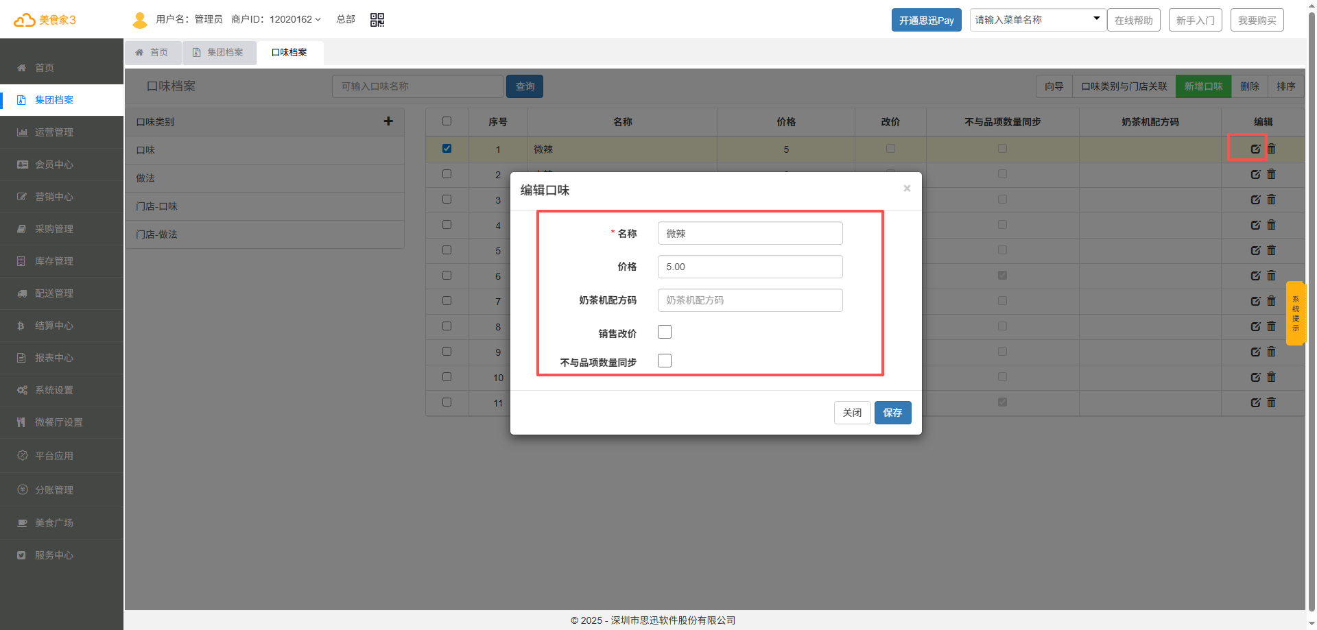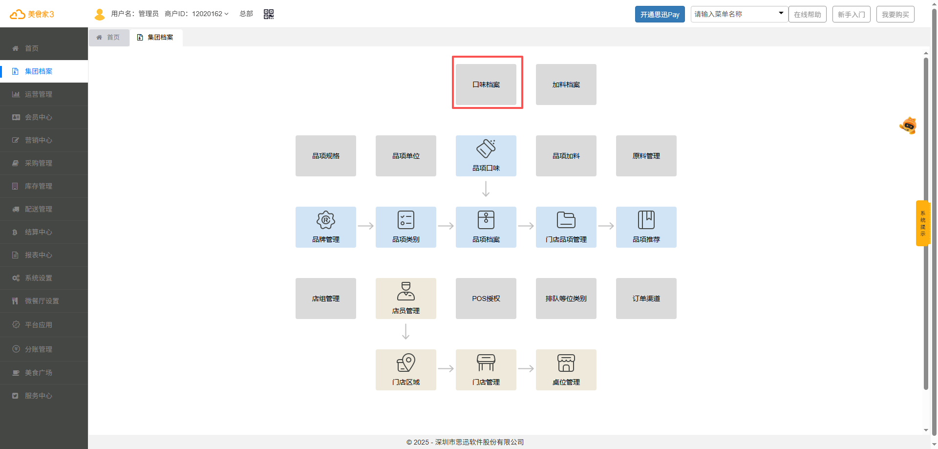 在后台【集团档案】中,点击【口味档案】进入管理界面。