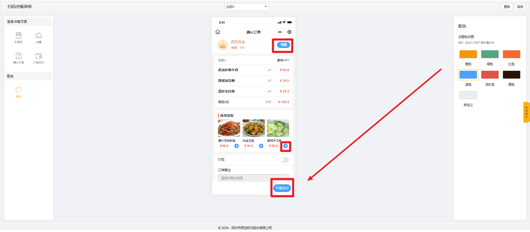 设置扫码点餐界面的主题颜色。
