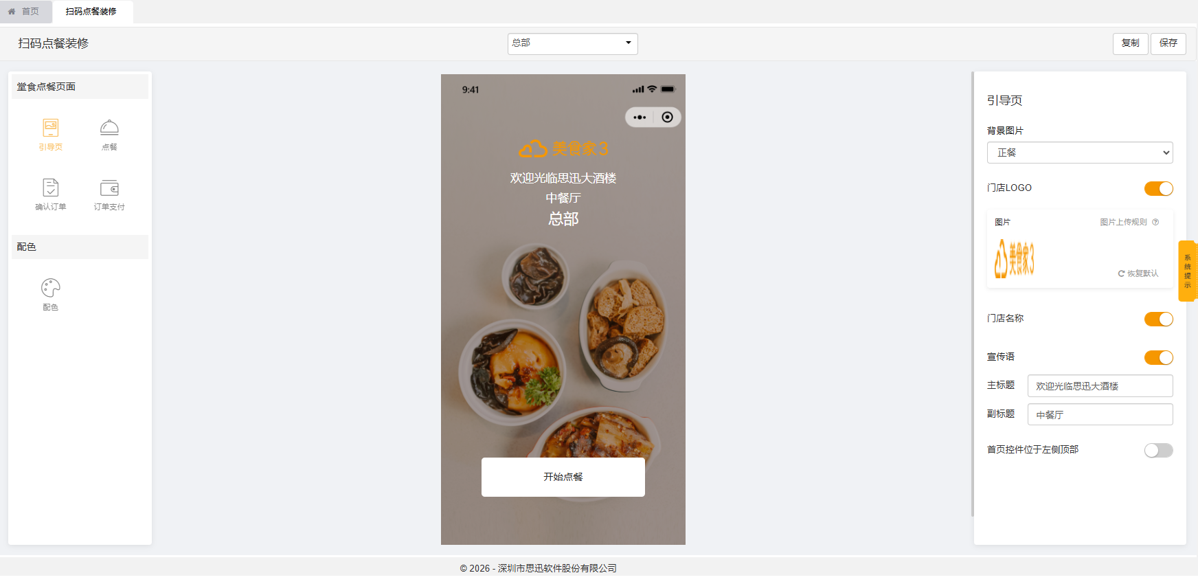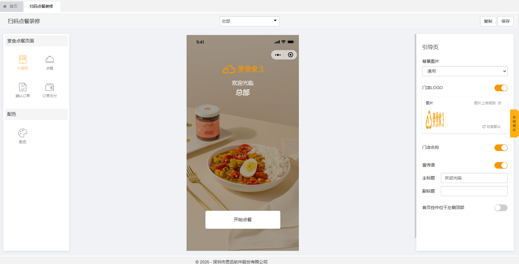 编辑扫码点餐引导页,主要编辑内容有: