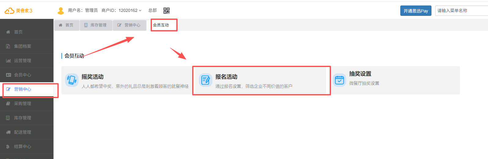 位置: 【营销中心】 -> 【会员互动】 -> 【报名活动】