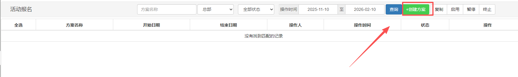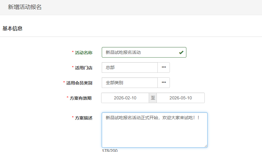 方案有效期:设置活动的报名与有效时间范围。