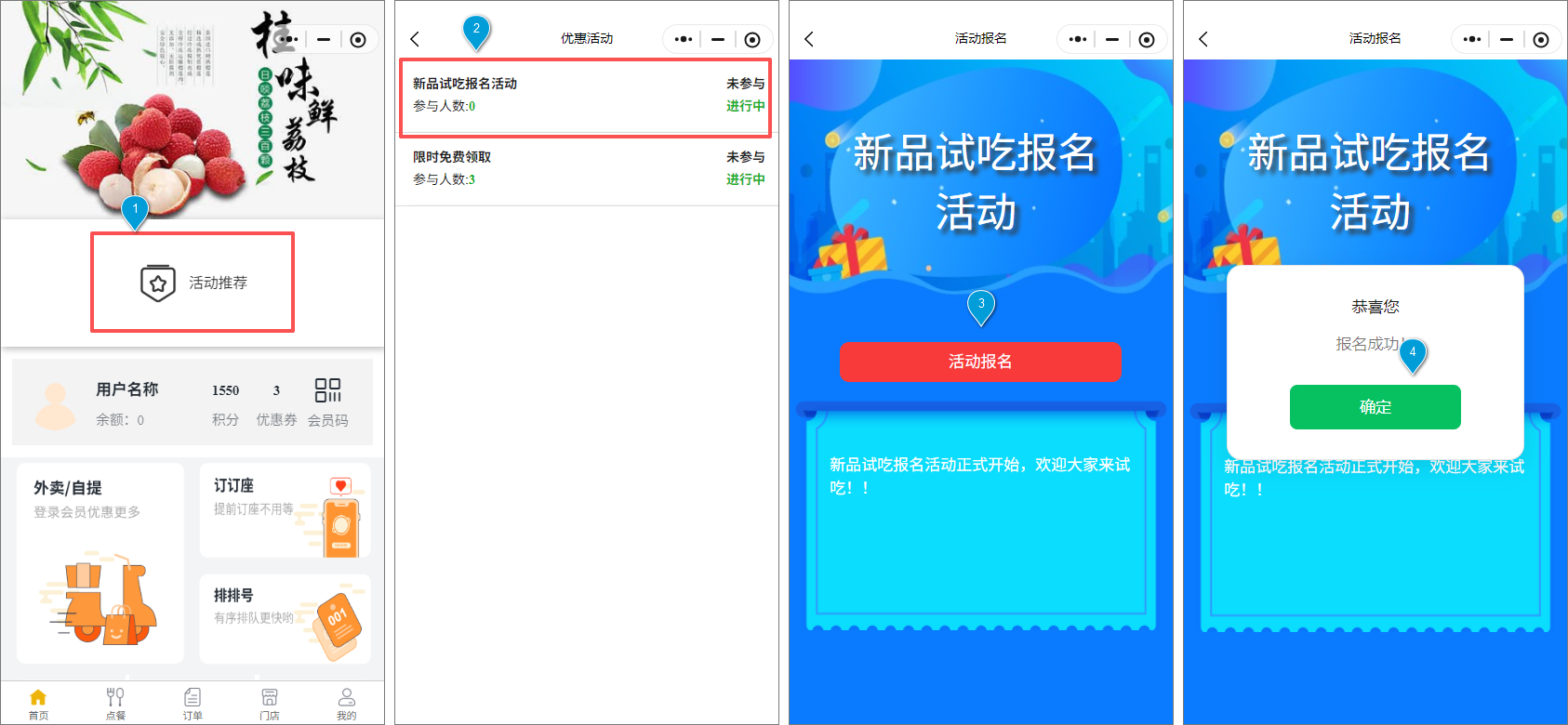 会员在手机端进入“微餐厅”小程序,点击首页的“活动推荐”入口,进入活动列表页,找到相应的报名活动。