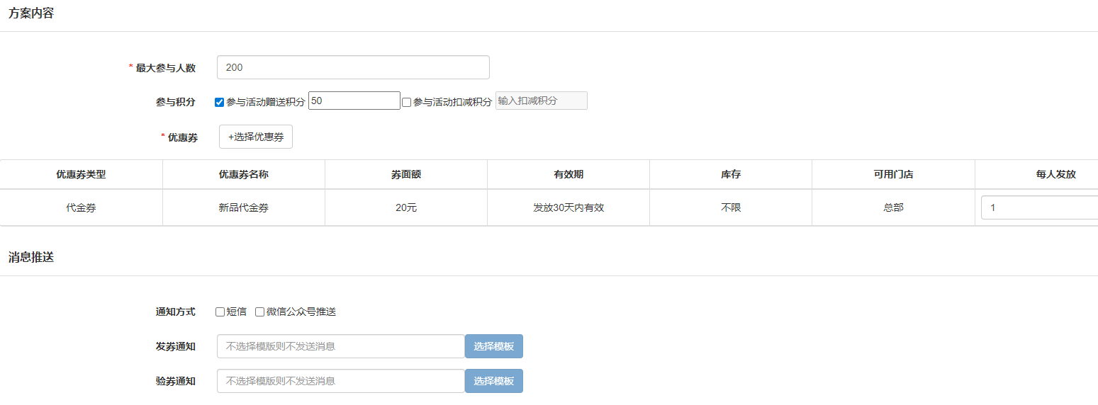 适用门店:选择开展活动的门店。