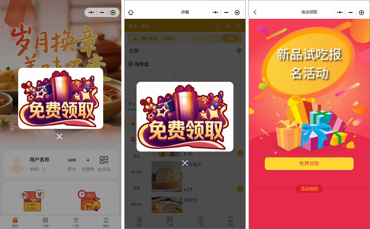 活动启用后,不同特征属性的会员在进入扫码点餐页面或微客宝小程序时,将看到为其定制的不同活动弹窗。点击弹窗即可直接跳转至对应的活动页面参与互动。