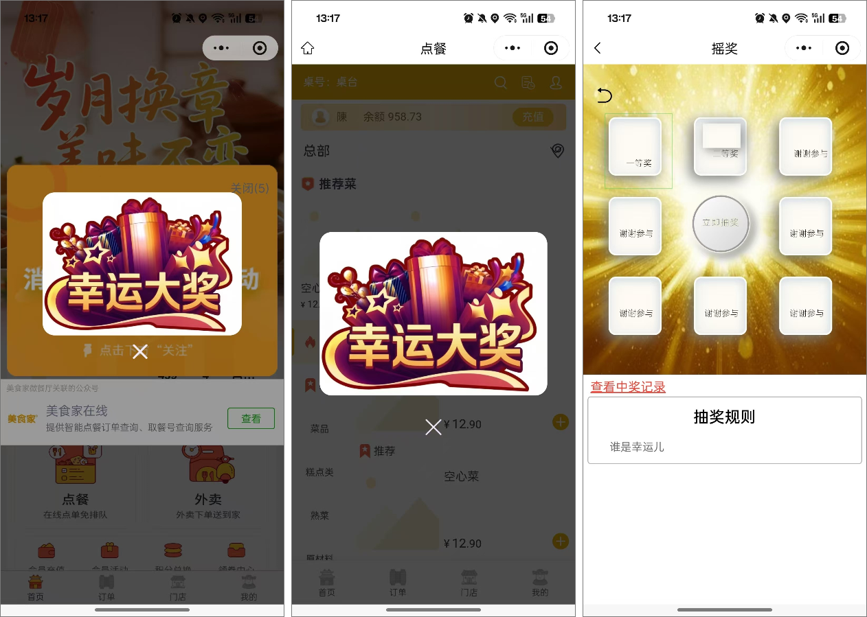 功能概述:“千人千面”是一项基于数据分析的个性化精准营销功能。系统通过分析不同会员的兴趣偏好、消费习惯及历史行为,为其量身定制并推送专属的营销活动(如特定充值活动、拼团、摇奖等)。当会员进入扫码点餐或微餐厅(微客宝)小程序时,系统将以弹窗形式推荐其最可能感兴趣的营销内容,实现“一人一策”的智能触达,从而显著提升活动转化率与会员体验。