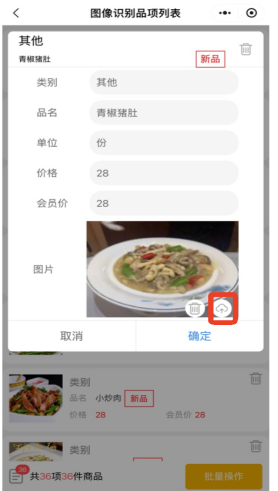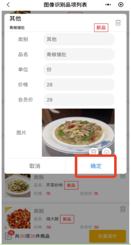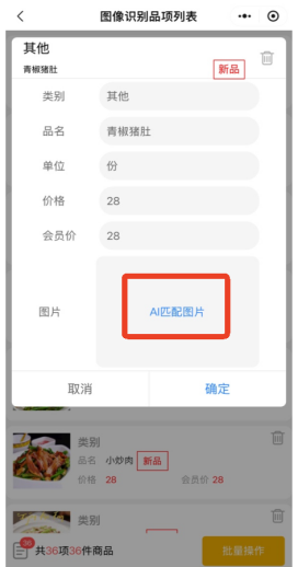 6.4 点击确定,即可新增单个品项,新增成功后此品项会从图像识别品项列表中删除。