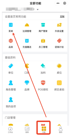 1.首先进入店小宝小程序,点击功能栏,打开菜单。