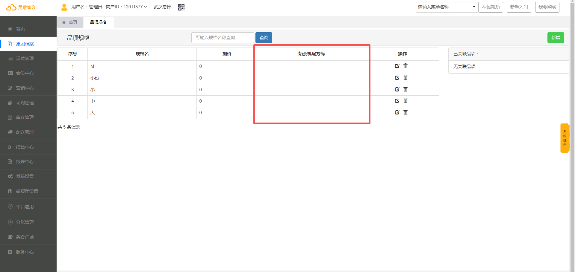 1.2、品项规格增加奶茶机配方码