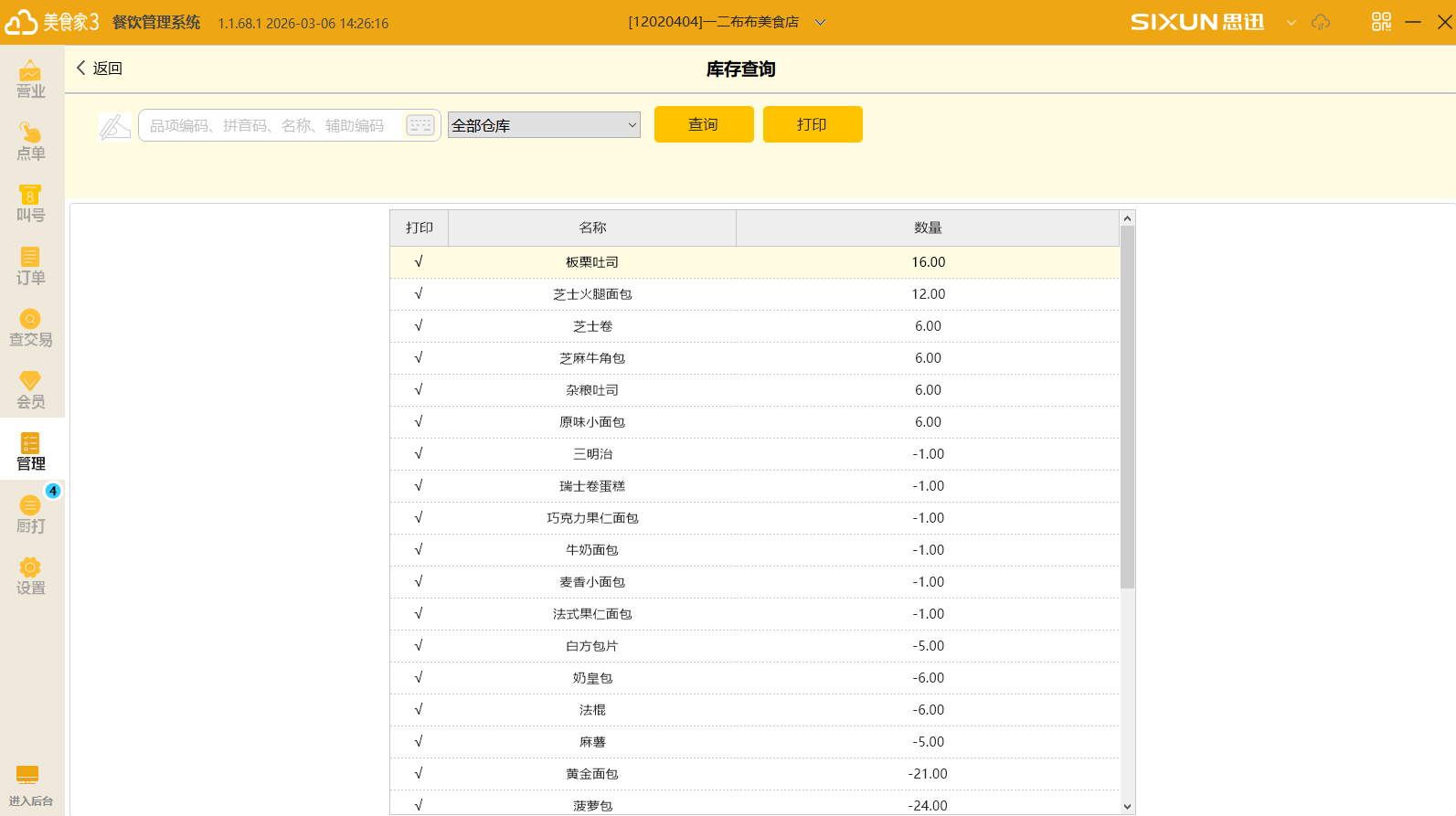 查询品项的系统库存。