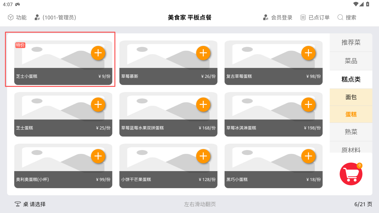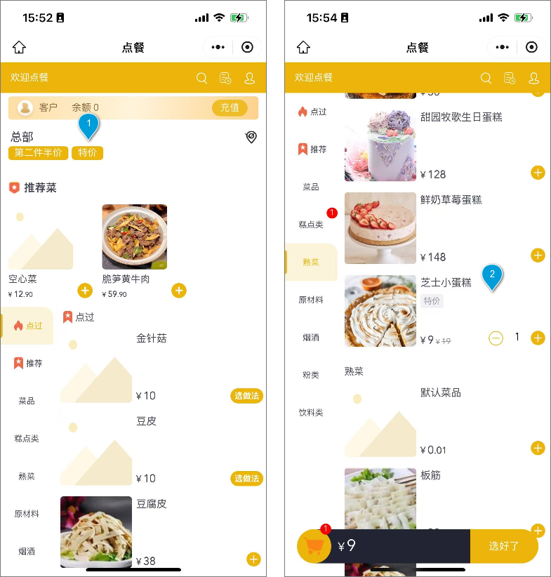 点餐界面中,特价商品会有“特”字标识,直接显示商品的特价。