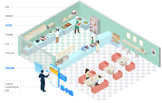 产品介绍餐饮营业模式多样化和移动设备的应用日益广泛,为给客户提供更灵活的营业方式,结合店小宝小程序和扫码点餐,我司推出“云小店”。在美食家云平台上注册商户后,建立云小店,无需在PC端安装门店客户端,通过微信小程序连接打印机,顾客扫码点餐下单,通过云打印机、公众号消息推送及云小店实时管理订单,更方便快捷。 图1 方案图 图2 场景图 图3 流程图文档更新时间: 2025-09-17 06:30 作者:徐珍