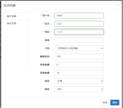 目录 搜索 美食家经典版学习指南美食家经典版后台管理一、系统功能概述二、使用须知三、登录系统四、开店向导五、后台首页六、档案七、促销7.1 促销计划7.1.1 促销计划-特价7.1.2 促销计划-折扣7.1.3 促销计划-买一赠一7.1.4 促销计划-第二份半价7.1.5 促销计划-满减7.1.6 促销计划-满量7.1.7 促销计划-满赠7.2 套餐热卖7.3 当前促销7.4 促销汇总八、会员8.1 会员资料8.2 会员类别8.3 会员设置8.4 会员消费8.5 会员积分8.6 会员储值8.7 充值赠送8.8 小额储值8.9 优惠券8.10 会员挂账结算8.11 精准营销8.12 消费满额送券九、门店9.1 门店管理9.2 店员管理9.3 桌位管理9.4 pos授权十、采购10.1 入库单10.2 采购申请单十一、库存十二、报表12.1 收银情况查询12.2 品项销售查询12.3 储值分析12.4 会员消费十三、设置13.1 支付设置13.2 商户资料13.3 数据清理13.4 个人账号13.5 外卖设置13.6 销售设置13.7 短信设置十四、扫码点餐14.1 扫码点菜设置14.2 商户设置14.3 扫码点餐装修14.4 店铺装修模版十五、微餐厅15.1 门店小程序码15.2 抽奖设置十六、微外卖16.1 微外卖设置16.2 配送设置十七、下载美食家经典版Windows前台使用须知登录点菜销售清单菜品信息菜品编辑收款结账桌台桌台操作桌台状态菜品编辑菜品操作收款结账订单扫码点餐饿了么餐道微外卖查交易查订单订单详情交班交班估清沽清会员新增会员查询|读卡挂失换卡修改资料修改密码积分调整储值充值查看优惠券报表营业汇总收银汇总菜品销售流水菜品销售汇总设置双屏钱箱计价秤小票打印基础设置票头票尾打印明细读卡器APP下载快捷键条码秤标签打印厨房打印客显其他更多桌台预订日志酒水寄存云小店一、产品介绍二、美食家经典版后台环境配置2.1 账号注册与续费2.1.1 注册2.1.2 续费及购买2.2 云小店后台配置2.2.1 新增云小店2.2.2 店员设置2.2.3 品项设置2.2.4 支付设置2.2.5 扫码点餐设置三、云小店小程序使用3.1 云小店登录3.2 云小店界面3.2.1 云小店设置3.2.2 品项管理3.2.3 订单管理3.2.4 数据分析3.2.5 小票打印3.2.6 今日订单3.3 下单支付4 消息推送4.1 顾客消息推送5 异常处理5.1 异常单据5.2 店员常见问题异常故障排查美食家经典版常见问题前言一、社区登记问题指南二、安装及登录类问题1、软件实施系统环境检查2、Windows XP 系统上安装运行问题3、Windows 10 系统上安装运行问题4、程序异常类问题5、程序已停止工作类问题6、初始化类问题6.1、数据库初始化失败6.2、服务异常,数据库服务启动异常6.3、链接数据库失败6.4、打开运行后,初始化时在“正在创建数据库用户”卡住不动7、设置主副收银8、登录类问题三、Windows 客户端常见问题1、交班2、小票打印3、思迅 pay3.1 思迅 pay 付款语音播报3.2 门店单独设置思迅 pay4、反结账5、下传数据报错6、前台优惠券的核销7、饿了么配送没有权限四、后台常见类问题1、开通会员储值2、开通会员挂账3、套餐设置4、附加费(茶位费)设置5、时价菜设置6、临时品项设置7、称重商品单位转换8、支付设置9、库存设置9.1 设置品项库存9.2 设置原料库存五、扫码点餐类问题1、获取桌台状态失败2、扫码点餐不能在线支付3、获取线下开单号失败4、餐前支付保留桌台占用状态六、店小宝常见问题1、店小宝多人使用七、安卓 POS 端常见问题1、安卓 POS 端连接 USB 打印机的操作步骤八、运营平台常见问题1、买断账号修改有效期美食家经典版聚合外卖团购劵1、开通和购买流量2、外卖平台授权绑定3、菜品绑定4、前台订单管理5、团购券套餐管理6、京东外卖7、前台核销美团券美食家经典版抖音团购券 暂无相关搜索结果! 本文档使用 MinDoc 发布 2.2.2 店员设置 店员设置在后台店员管理处新增云小店对应的店员。文档更新时间: 2025-09-18 06:53 作者:徐珍