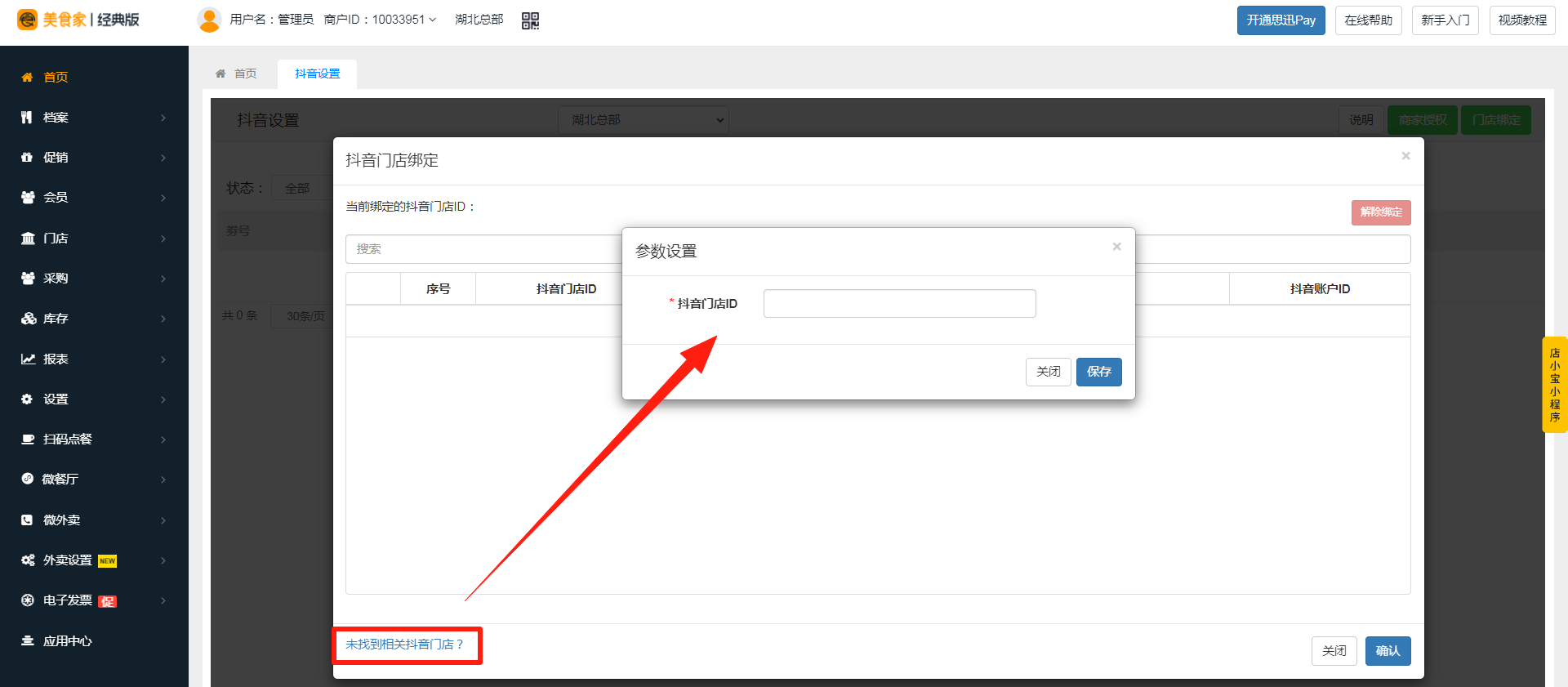 - 路径:美食家经典版后台 → 系统设置 → 抖音设置