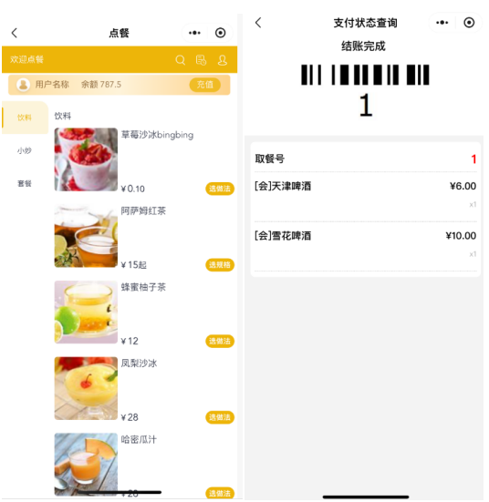 目录 搜索 美食家经典版学习指南美食家经典版后台管理一、系统功能概述二、使用须知三、登录系统四、开店向导五、后台首页六、档案七、促销7.1 促销计划7.1.1 促销计划-特价7.1.2 促销计划-折扣7.1.3 促销计划-买一赠一7.1.4 促销计划-第二份半价7.1.5 促销计划-满减7.1.6 促销计划-满量7.1.7 促销计划-满赠7.2 套餐热卖7.3 当前促销7.4 促销汇总八、会员8.1 会员资料8.2 会员类别8.3 会员设置8.4 会员消费8.5 会员积分8.6 会员储值8.7 充值赠送8.8 小额储值8.9 优惠券8.10 会员挂账结算8.11 精准营销8.12 消费满额送券九、门店9.1 门店管理9.2 店员管理9.3 桌位管理9.4 pos授权十、采购10.1 入库单10.2 采购申请单十一、库存十二、报表12.1 收银情况查询12.2 品项销售查询12.3 储值分析12.4 会员消费十三、设置13.1 支付设置13.2 商户资料13.3 数据清理13.4 个人账号13.5 外卖设置13.6 销售设置13.7 短信设置十四、扫码点餐14.1 扫码点菜设置14.2 商户设置14.3 扫码点餐装修14.4 店铺装修模版十五、微餐厅15.1 门店小程序码15.2 抽奖设置十六、微外卖16.1 微外卖设置16.2 配送设置十七、下载美食家经典版Windows前台使用须知登录点菜销售清单菜品信息菜品编辑收款结账桌台桌台操作桌台状态菜品编辑菜品操作收款结账订单扫码点餐饿了么餐道微外卖查交易查订单订单详情交班交班估清沽清会员新增会员查询|读卡挂失换卡修改资料修改密码积分调整储值充值查看优惠券报表营业汇总收银汇总菜品销售流水菜品销售汇总设置双屏钱箱计价秤小票打印基础设置票头票尾打印明细读卡器APP下载快捷键条码秤标签打印厨房打印客显其他更多桌台预订日志酒水寄存云小店一、产品介绍二、美食家经典版后台环境配置2.1 账号注册与续费2.1.1 注册2.1.2 续费及购买2.2 云小店后台配置2.2.1 新增云小店2.2.2 店员设置2.2.3 品项设置2.2.4 支付设置2.2.5 扫码点餐设置三、云小店小程序使用3.1 云小店登录3.2 云小店界面3.2.1 云小店设置3.2.2 品项管理3.2.3 订单管理3.2.4 数据分析3.2.5 小票打印3.2.6 今日订单3.3 下单支付4 消息推送4.1 顾客消息推送5 异常处理5.1 异常单据5.2 店员常见问题异常故障排查美食家经典版常见问题前言一、社区登记问题指南二、安装及登录类问题1、软件实施系统环境检查2、Windows XP 系统上安装运行问题3、Windows 10 系统上安装运行问题4、程序异常类问题5、程序已停止工作类问题6、初始化类问题6.1、数据库初始化失败6.2、服务异常,数据库服务启动异常6.3、链接数据库失败6.4、打开运行后,初始化时在“正在创建数据库用户”卡住不动7、设置主副收银8、登录类问题三、Windows 客户端常见问题1、交班2、小票打印3、思迅 pay3.1 思迅 pay 付款语音播报3.2 门店单独设置思迅 pay4、反结账5、下传数据报错6、前台优惠券的核销7、饿了么配送没有权限四、后台常见类问题1、开通会员储值2、开通会员挂账3、套餐设置4、附加费(茶位费)设置5、时价菜设置6、临时品项设置7、称重商品单位转换8、支付设置9、库存设置9.1 设置品项库存9.2 设置原料库存五、扫码点餐类问题1、获取桌台状态失败2、扫码点餐不能在线支付3、获取线下开单号失败4、餐前支付保留桌台占用状态六、店小宝常见问题1、店小宝多人使用七、安卓 POS 端常见问题1、安卓 POS 端连接 USB 打印机的操作步骤八、运营平台常见问题1、买断账号修改有效期美食家经典版聚合外卖团购劵1、开通和购买流量2、外卖平台授权绑定3、菜品绑定4、前台订单管理5、团购券套餐管理6、京东外卖7、前台核销美团券美食家经典版抖音团购券 暂无相关搜索结果! 本文档使用 MinDoc 发布 3.3 下单支付 下单支付顾客扫点餐二维码,点餐下单。文档更新时间: 2025-09-18 06:55 作者:徐珍