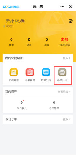目录 搜索 美食家经典版学习指南美食家经典版后台管理一、系统功能概述二、使用须知三、登录系统四、开店向导五、后台首页六、档案七、促销7.1 促销计划7.1.1 促销计划-特价7.1.2 促销计划-折扣7.1.3 促销计划-买一赠一7.1.4 促销计划-第二份半价7.1.5 促销计划-满减7.1.6 促销计划-满量7.1.7 促销计划-满赠7.2 套餐热卖7.3 当前促销7.4 促销汇总八、会员8.1 会员资料8.2 会员类别8.3 会员设置8.4 会员消费8.5 会员积分8.6 会员储值8.7 充值赠送8.8 小额储值8.9 优惠券8.10 会员挂账结算8.11 精准营销8.12 消费满额送券九、门店9.1 门店管理9.2 店员管理9.3 桌位管理9.4 pos授权十、采购10.1 入库单10.2 采购申请单十一、库存十二、报表12.1 收银情况查询12.2 品项销售查询12.3 储值分析12.4 会员消费十三、设置13.1 支付设置13.2 商户资料13.3 数据清理13.4 个人账号13.5 外卖设置13.6 销售设置13.7 短信设置十四、扫码点餐14.1 扫码点菜设置14.2 商户设置14.3 扫码点餐装修14.4 店铺装修模版十五、微餐厅15.1 门店小程序码15.2 抽奖设置十六、微外卖16.1 微外卖设置16.2 配送设置十七、下载美食家经典版Windows前台使用须知登录点菜销售清单菜品信息菜品编辑收款结账桌台桌台操作桌台状态菜品编辑菜品操作收款结账订单扫码点餐饿了么餐道微外卖查交易查订单订单详情交班交班估清沽清会员新增会员查询|读卡挂失换卡修改资料修改密码积分调整储值充值查看优惠券报表营业汇总收银汇总菜品销售流水菜品销售汇总设置双屏钱箱计价秤小票打印基础设置票头票尾打印明细读卡器APP下载快捷键条码秤标签打印厨房打印客显其他更多桌台预订日志酒水寄存云小店一、产品介绍二、美食家经典版后台环境配置2.1 账号注册与续费2.1.1 注册2.1.2 续费及购买2.2 云小店后台配置2.2.1 新增云小店2.2.2 店员设置2.2.3 品项设置2.2.4 支付设置2.2.5 扫码点餐设置三、云小店小程序使用3.1 云小店登录3.2 云小店界面3.2.1 云小店设置3.2.2 品项管理3.2.3 订单管理3.2.4 数据分析3.2.5 小票打印3.2.6 今日订单3.3 下单支付4 消息推送4.1 顾客消息推送5 异常处理5.1 异常单据5.2 店员常见问题异常故障排查美食家经典版常见问题前言一、社区登记问题指南二、安装及登录类问题1、软件实施系统环境检查2、Windows XP 系统上安装运行问题3、Windows 10 系统上安装运行问题4、程序异常类问题5、程序已停止工作类问题6、初始化类问题6.1、数据库初始化失败6.2、服务异常,数据库服务启动异常6.3、链接数据库失败6.4、打开运行后,初始化时在“正在创建数据库用户”卡住不动7、设置主副收银8、登录类问题三、Windows 客户端常见问题1、交班2、小票打印3、思迅 pay3.1 思迅 pay 付款语音播报3.2 门店单独设置思迅 pay4、反结账5、下传数据报错6、前台优惠券的核销7、饿了么配送没有权限四、后台常见类问题1、开通会员储值2、开通会员挂账3、套餐设置4、附加费(茶位费)设置5、时价菜设置6、临时品项设置7、称重商品单位转换8、支付设置9、库存设置9.1 设置品项库存9.2 设置原料库存五、扫码点餐类问题1、获取桌台状态失败2、扫码点餐不能在线支付3、获取线下开单号失败4、餐前支付保留桌台占用状态六、店小宝常见问题1、店小宝多人使用七、安卓 POS 端常见问题1、安卓 POS 端连接 USB 打印机的操作步骤八、运营平台常见问题1、买断账号修改有效期美食家经典版聚合外卖团购劵1、开通和购买流量2、外卖平台授权绑定3、菜品绑定4、前台订单管理5、团购券套餐管理6、京东外卖7、前台核销美团券美食家经典版抖音团购券 暂无相关搜索结果! 本文档使用 MinDoc 发布 3.2.5 小票打印 小票打印扫码打印机后的二维码或手动输入SN号、输入打印机名称即可添加打印机。打印机添加后可进行打印机测试、删除等。在云小店添加打印机后,打印机会同步到美食家经典版后台扫码点餐设置打印机的地方。文档更新时间: 2025-09-18 06:54 作者:徐珍