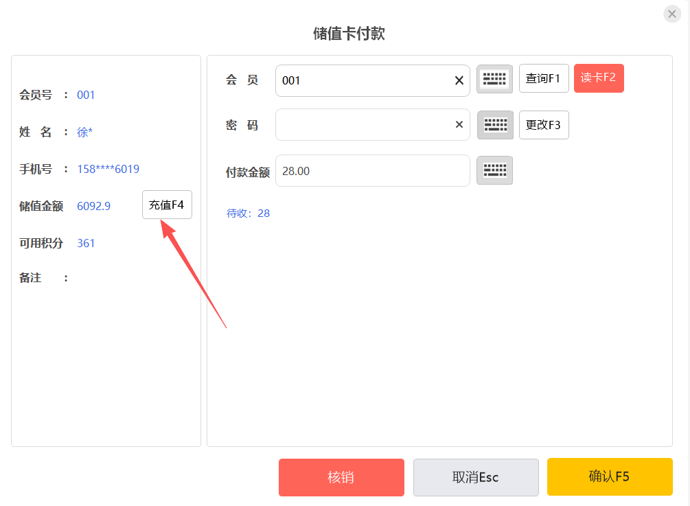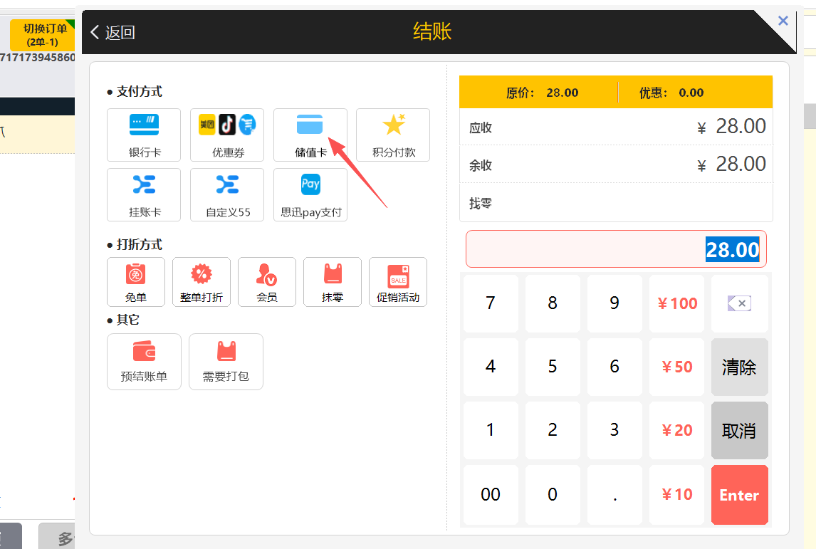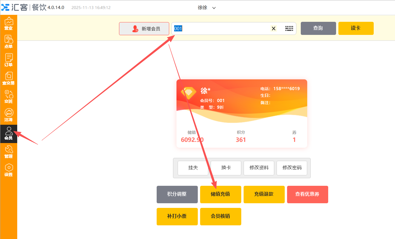 目录 搜索 汇客餐饮学习指南汇客餐饮后台管理一、系统功能概述二、使用须知三、登录系统四、开店向导五、后台首页六、档案6.1 品项类别6.2 品项档案6.3 品项口味6.4 规格管理6.5 原料管理6.6 品项加料6.7 品项单位七、促销7.1 促销计划7.1.1 促销计划-特价7.1.2 促销计划-折扣7.1.3 促销计划-买一赠一7.1.4 促销计划-第二份半价7.1.5 促销计划-满减7.1.6 促销计划-满量7.1.7 促销计划-满赠7.2 套餐热卖7.3 当前促销7.4 促销汇总八、会员8.1 会员资料8.2 会员类别8.3 会员设置8.4 会员积分8.5 会员储值8.6 充值赠送8.7 小额储值8.8 优惠券8.9 会员挂账结算8.10 精准营销8.11 消费满额送券九、门店9.1 门店管理9.2 店员管理9.3 桌位管理9.4 pos授权十、采购10.1 入库单10.2 采购申请单10.3 入库明细10.4 入库汇总十一、库存11.1 品项库存11.2 原料库存11.3 盘点单11.4 报损单十二、报表12.1 收银情况查询营业汇总收银流水收银汇总收银员汇总付款方式汇总上缴金额报表订单查询12.2 品项销售查询品项销售流水品项销售汇总退菜记录品项赠送品项赠送明细连锁销售排行品项毛利汇总12.3 储值分析会员储值汇总会员储值明细储值卡支付记录12.4 会员消费会员消费汇总会员消费明细会员挂账统计会员财务汇总12.5 营销活动报表优惠券营销明细优惠券营销汇总十三、设置13.1 支付设置13.2 商户资料13.3 数据清理13.4 个人账号13.5 餐道外卖设置13.6 销售设置13.7 短信设置13.8 抖音设置十四、扫码点餐14.1 扫码点菜设置14.2 商户设置14.3 扫码点餐装修14.4 店铺装修模板十五、微餐厅15.1 门店小程序码15.2 抽奖设置十六、微外卖16.1 微外卖设置16.2 配送设置十七、下载汇客餐饮Windows前台使用须知登录点菜销售清单菜品信息菜品编辑收款结账营业桌台操作桌台状态菜品编辑菜品操作收款结账订单查交易查订单订单详情交班交班估清沽清会员新增会员查询|读卡挂失换卡修改资料修改密码积分调整储值充值查看优惠券补打小票会员核销管理桌台预订日志酒水寄存营业汇总收银汇总品项销售流水品项销售汇总酒水寄存报表设置小票打印基础设置票头票尾打印明细厨房打印标签打印取餐号快捷键双屏钱箱计价秤条码秤客显读卡器APP下载其他更多进入后台汇客餐饮常见问题前言一、社区登记问题指南二、安装及登录类问题1、软件实施系统环境检查2、Windows XP 系统上安装运行问题3、Windows 10 系统上安装运行问题4、程序异常类问题5、程序已停止工作类问题6、初始化类问题6.1、数据库初始化失败6.2、服务异常,数据库服务启动异常6.3、链接数据库失败6.4、打开运行后,初始化时在“正在创建数据库用户”卡住不动7、设置主副收银8、登录类问题三、Windows 客户端常见问题1、交班2、小票打印3、思迅 pay3.1 思迅 pay 付款语音播报3.2 门店单独设置思迅 pay4、反结账5、下传数据报错6、前台优惠券的核销7、饿了么配送没有权限四、后台常见类问题1、开通会员储值2、开通会员挂账3、套餐设置4、附加费(茶位费)设置5、时价菜设置6、临时品项设置7、称重商品单位转换8、支付设置9、库存设置9.1 设置品项库存9.2 设置原料库存五、扫码点餐类问题1、获取桌台状态失败2、扫码点餐不能在线支付3、获取线下开单号失败4、餐前支付保留桌台占用状态六、店小宝常见问题1、店小宝多人使用七、安卓 POS 端常见问题1、安卓 POS 端连接 USB 打印机的操作步骤八、运营平台常见问题1、买断账号修改有效期汇客餐饮聚合外卖团购劵1、开通和购买流量2、外卖及团购券平台授权绑定3、外卖菜品绑定4、前台订单管理5、团购券套餐管理6、京东外卖7、前台核销美团券汇客餐饮抖音团购券 暂无相关搜索结果! 本文档使用 MinDoc 发布 8.6 充值赠送 充值赠送是当会员充值一定额度赠送一定的额度、积分或者优惠券。充值赠送方案的赠送方式有按照金额赠送、按比例赠送。 一、创建活动 二、前台充值界面在前台会员模块,先查询出会员,再点击储值充值,选择充值方案进行充值即可。 或者在结账界面,选择储值卡支付,也可以进行会员充值。 三、扫码点餐充值界面在点菜界面,和结账界面都可以进行会员充值。 文档更新时间: 2025-11-13 08:56 作者:徐珍