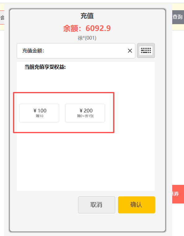 充值赠送是当会员充值一定额度赠送一定的额度、积分或者优惠券。充值赠送方案的赠送方式有按照金额赠送、按比例赠送。 一、创建活动 二、前台充值界面在前台会员模块,先查询出会员,再点击储值充值,选择充值方案进行充值即可。 或者在结账界面,选择储值卡支付,也可以进行会员充值。 三、扫码点餐充值界面在点菜界面,和结账界面都可以进行会员充值。 文档更新时间: 2025-11-13 08:56 作者:徐珍