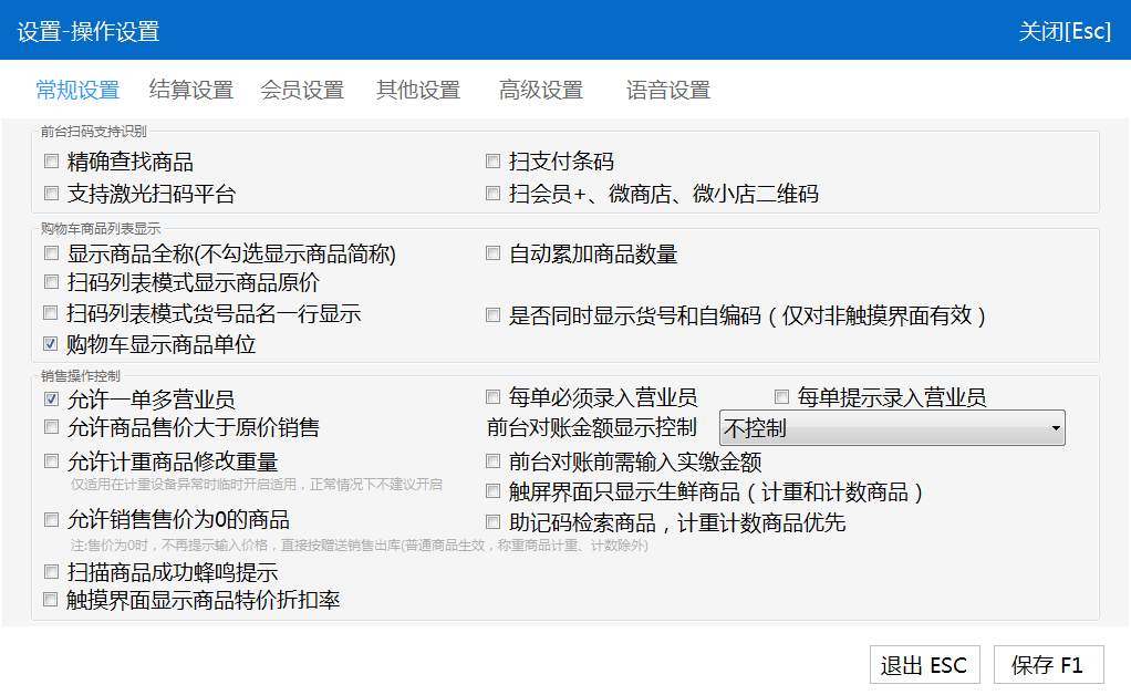 允许商品大于原销售价销售:不勾选情况下,对一个商品改价时,大于原价会弹出提示,从而禁止大于原销售价销售
