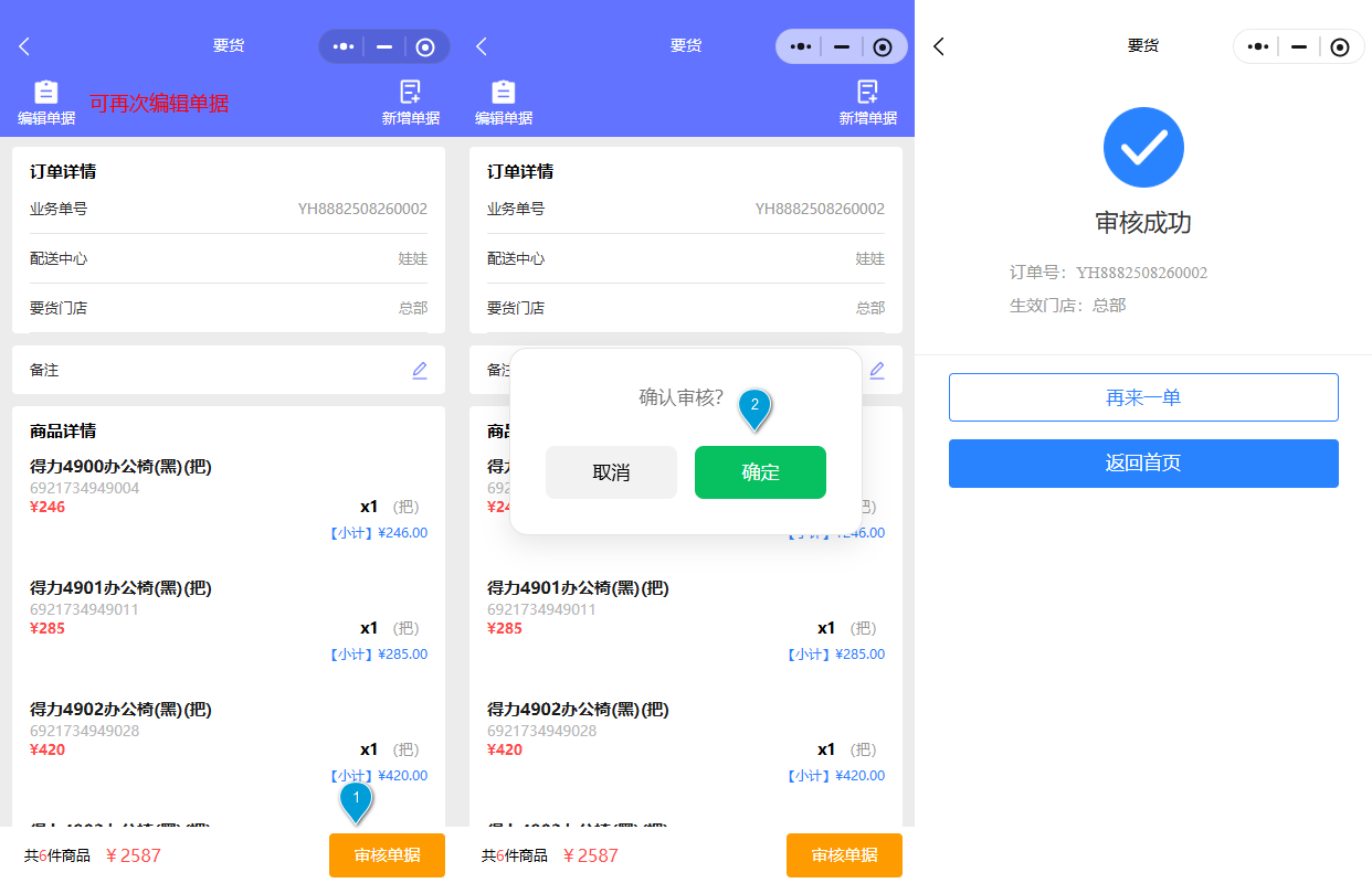 分店缺货时,可向总部发起要货请求。要货单审核后,对双方门店库存无影响。