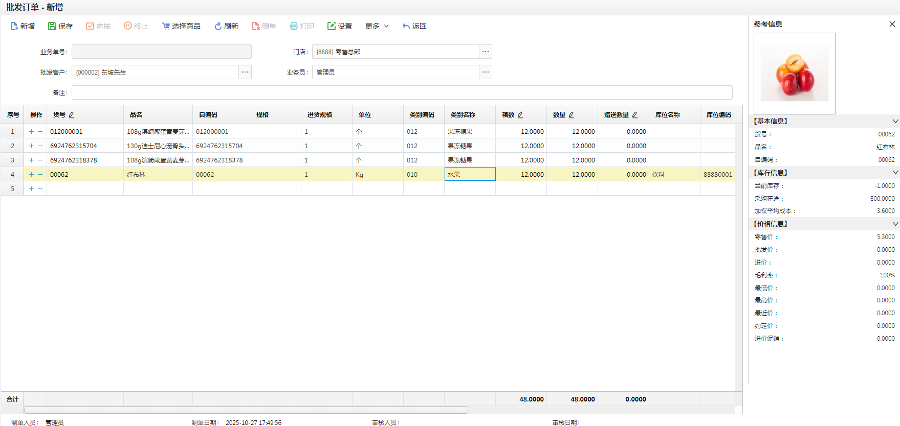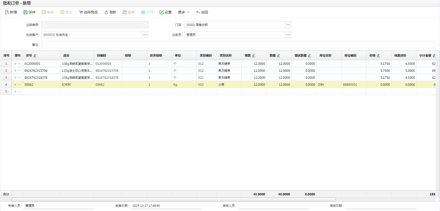 位置:【批发】-> 【批发业务】-> 【批发订单】