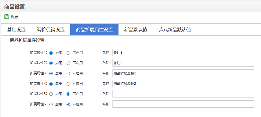 商品扩展属性设置
