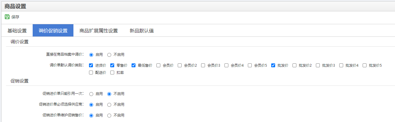 相关使用了解 点击可跳转>>>多批发价:是否启用商品档案多个批发价;