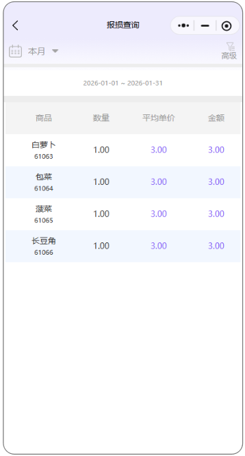 ,可以通过门店、类别、品牌和商品查询不同条件下的商品报损情况;