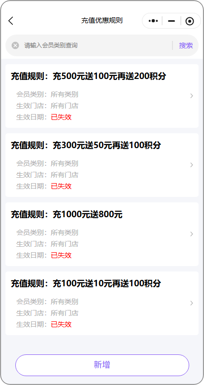 显示当前已设置的会员类别充值规则