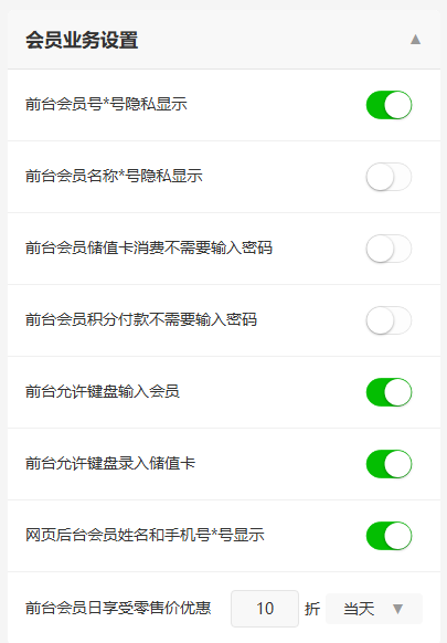 会员业务功能开关