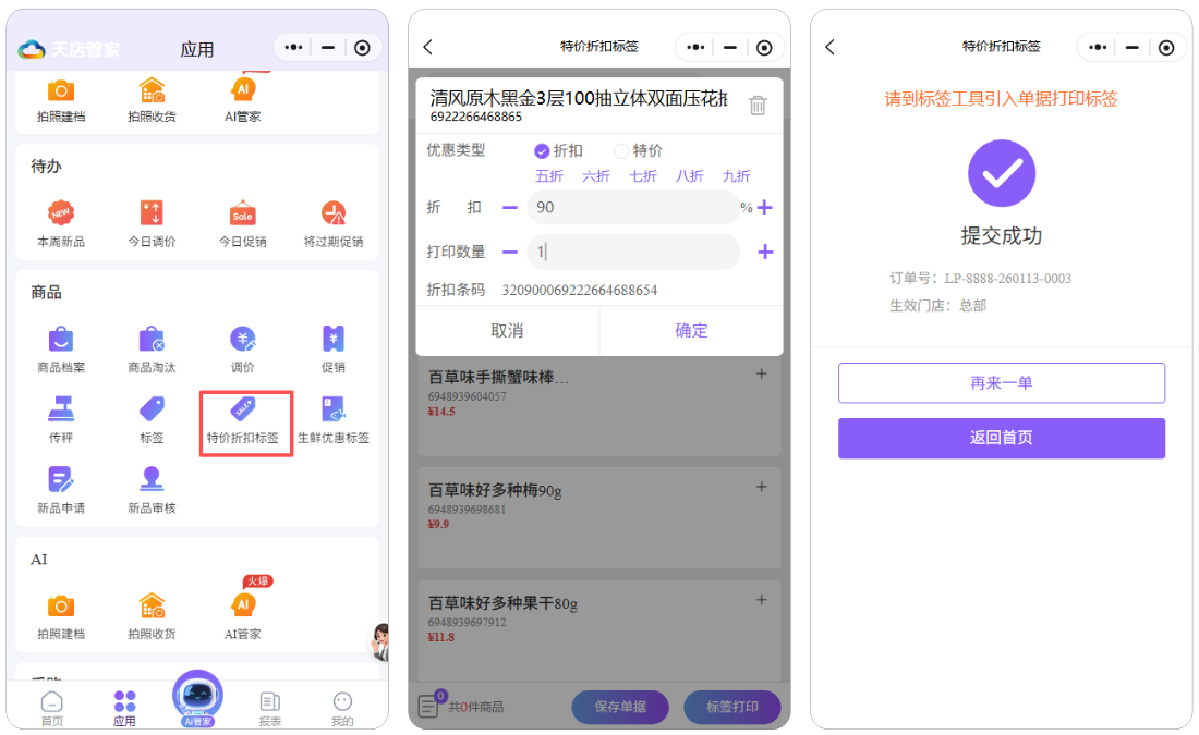 作用: 特价折扣标签码功能旨在解决商家在处理商品时面临的挑战,特别是对于那些即将到期的商品,商家通常会采取打折促销的方式来加速库存周转。