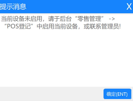 首次登录时,点击[商品实时分拣],将提示 去后台”POS登记”中启用设备;请根据提示进行启用操作。