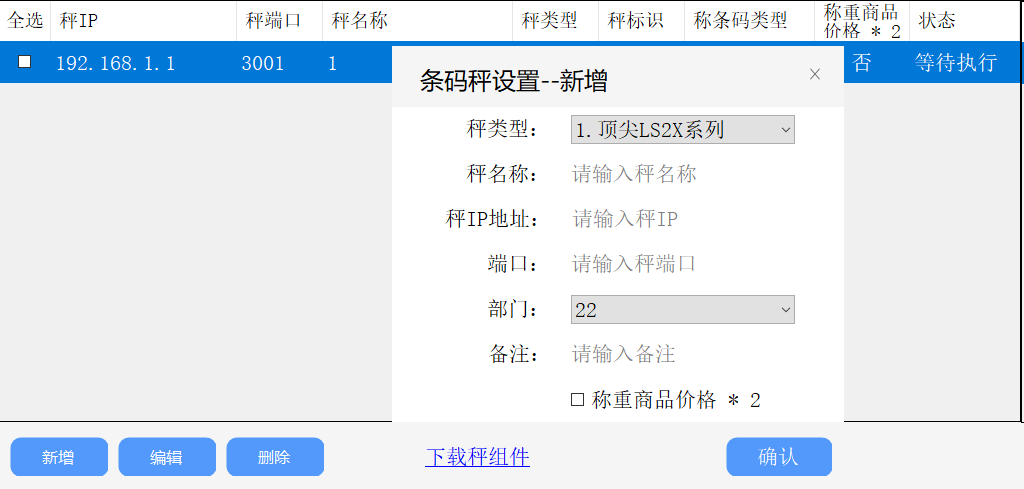 (3)设置:可编新增/编辑/删除条码秤设置