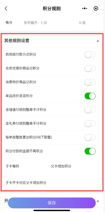 可查看各会员类别设置的积分方式。