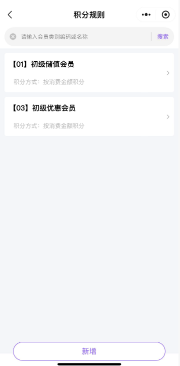 功能:按会员类别设置前台会员消费积分规则,每个会员类别仅可设置一个积分规则。