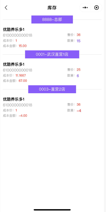 门店库存查询用途:查询商品的库存数量、成本金额、售价。可通过扫描查询,也可以手动输入,以及通过右上角查询按类别或品牌进行筛查。点击某个商品,总部支持查看各个门店的库存数量。 如图所示 文档更新时间: 2026-01-19 07:17 作者:徐珍