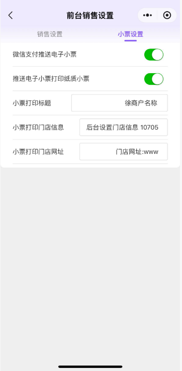 推送电子小票打印纸质小票:启用后,在推送电子小票时也同时打印纸质小票,反之关闭时仅推送电子小票,不打印纸质小票。