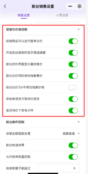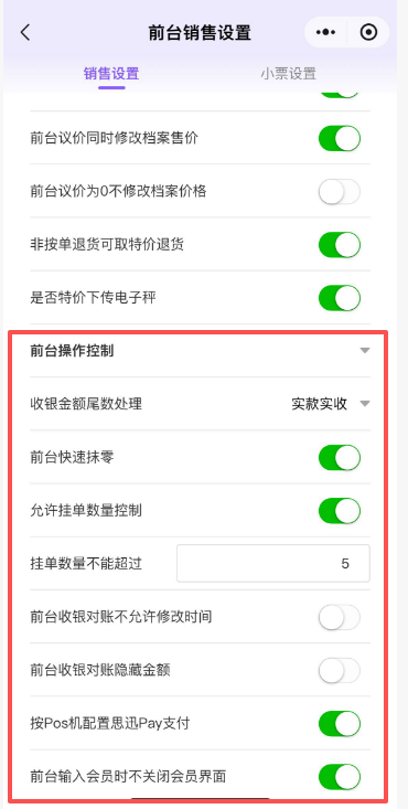 前台快速抹零:启用后,在前台结账界面,可以快速手动抹零,包括抹分、抹角、抹到伍角、抹元。
