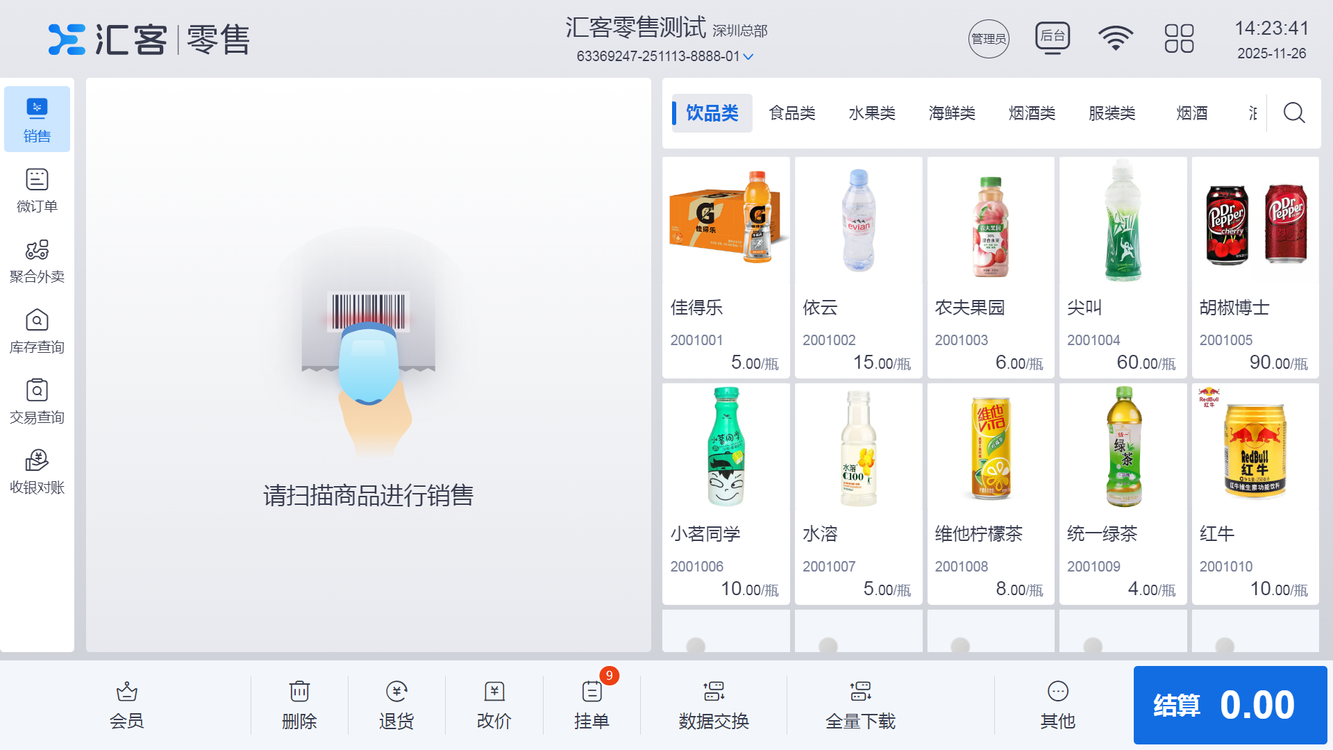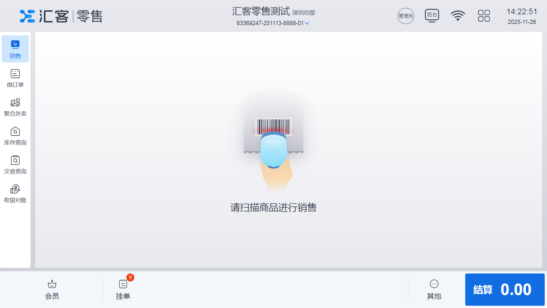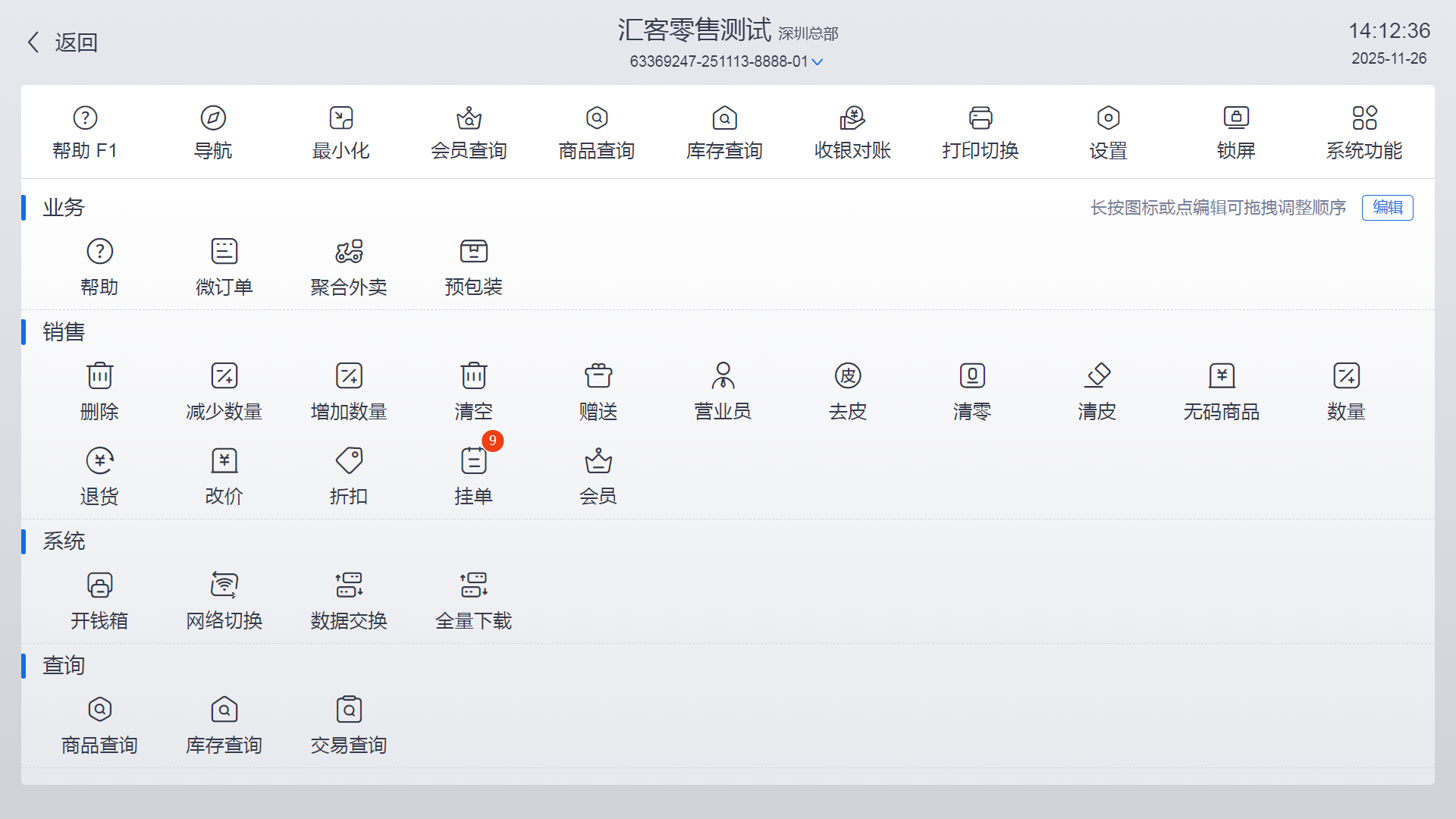 网络切换:点击后变更销售界面的网络状态;以便客户网络故障时仍能正常使用收银。