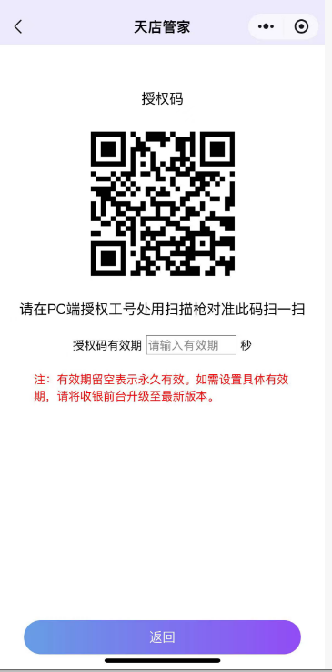 目录 搜索 汇客·学习指南汇客·Windows前台使用须知注册&前台登录界面使用销售商品查询会员结算退货其他微订单聚合外卖库存查询交易查询收银对账系统功能帮助导航风格切换最小化收银对账设置POS快捷键打印 & 钱箱外设秤相关其他扫码付主题界面设置模板锁屏退出场景应用营业员使用流程挂单使用流程培训模式预设商品业务AI使用流程预包装使用流程类别限定显示常见咨询安装咨询登录咨询核销咨询交易时已经支付款项,但是软件未有流水记录结算咨询适配型号大全打印机型号适配计价秤支持型号客显支持型号叠加器支持型号汇客·安卓POS收银一、登录二、收银2.1 收银界面介绍2.2 收银流程介绍三、商品四、会员五、生意六、对账七、设置1.用户信息2.业务设置3.硬件设置 4.生鲜条码格式5.传称6.标签打印7.语音播报8.参数导入导出9.畅销商品10.关于八、更多九、支持促销类型十、安卓POS适配大全汇客.手机APP收银下载安装登录app开单销售按单退货交易查询收银对账系统设置数据下传库存盘点更多功能退出登录汇客·管店小程序使用须知工作台微管家商品管理营销管理订单管理报表查询应用商品AI采购配送库存会员报表营业分析营业分析毛利分析门店分析笔单分析商品排行类别销售商品毛利我的月报年报商品查询库存查询收银查询收银对账交易明细查询收银异常操作会员查询会员分析营业员销售查询我的VIP增值服务多账号切换系统设置打印设置总部订货、收货快速查询商品门店库存收货快速引用商品生成调价单单据详情显示售价及售价金额收货/调拨引用单据时自动读取数量电子海报市斤计价标签设置汇客·管家使用须知首页应用常用功能待办保质期预警商品商品档案商品淘汰调价促销标签特价折扣标签生鲜优惠标签AI拍照建档拍照收货AI管家采购订货收货退货供应商历史采购价采购设置配送要货调拨调拨收货库存盘点门店库存查询入库出库会员会员档案会员开卡积分冲减积分兑换会员设置会员类别积分规则充值优惠规则零售付款方式设置支付设置POS登记前台销售设置微管家商品管理营销管理订单管理报表查询系统用户管理授权码标签设置消息推送报表常用功能营业分析营业分析毛利分析门店分析笔单分析商品排行类别销售品牌销售商品毛利我的月报年报商品查询库存查询库存调整查询出入库明细收银查询收银对账交易明细查询收银员异常操作会员查询会员分析储值明细会员消费明细会员积分明细营业员销售查询我的故障报修多账号切换系统设置完善商户基本资料付费用户管理汇客·价签工具汇客传秤工具传秤工具·支持型号传秤工具·使用流程 暂无相关搜索结果! 本文档使用 MinDoc 发布 授权码 授权码当前台的操作员没有操作权限时,可以扫描有权限账号的授权码进行授权。 如图所示 文档更新时间: 2026-01-22 08:21 作者:徐珍