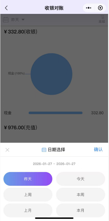 收银对账收银:即前台POS商品销售、退货产生的金额数据,按付款方式统计;充值:前台会员充值、线上会员充值,按付款方式统计;合计:按付款方式统计。“其他”为自定义付款方式合计,不同自定义付款方式不做分别统计。 如图所示 点击左上角,可以筛选日期查看数据;点击右上角,可以按照门店筛选查看数据;总部账号默认支持查询各个门店数据,分店仅能查询所属门店数据。 如图所示 文档更新时间: 2026-01-28 08:46 作者:徐珍