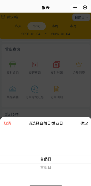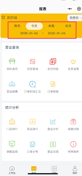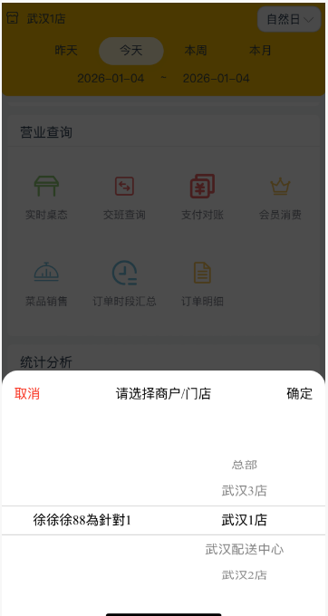默认查询今天的数据,可以点击查询昨天、本周或者本月的数据,下方也可以修改日期进行查询。