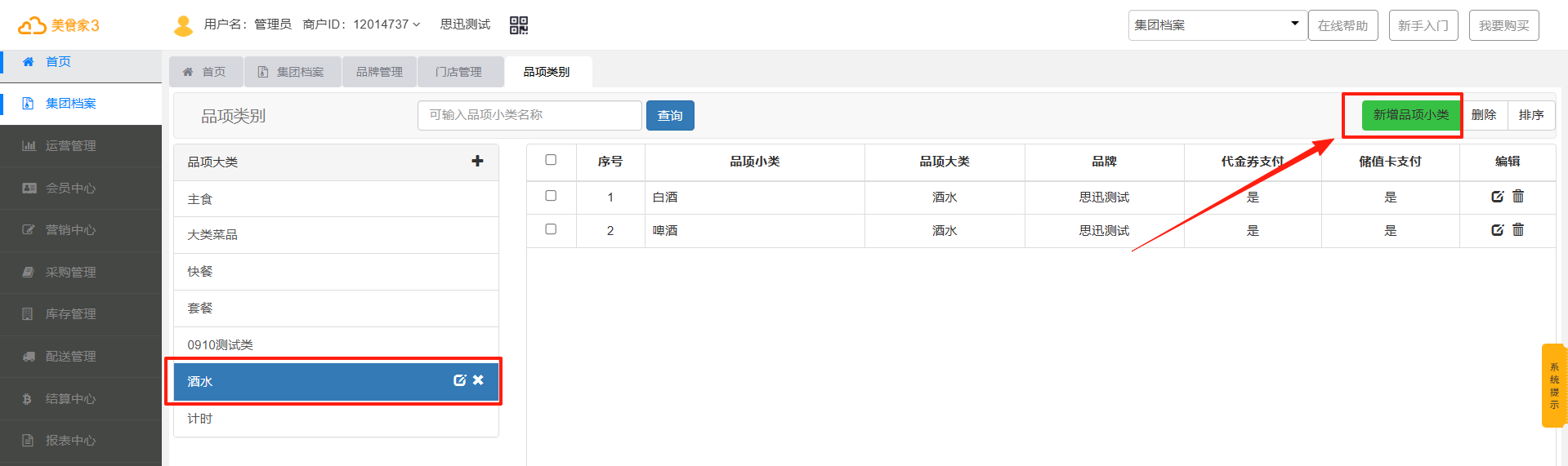 1.选择对应大类,再点击“新增品项小类”按钮。