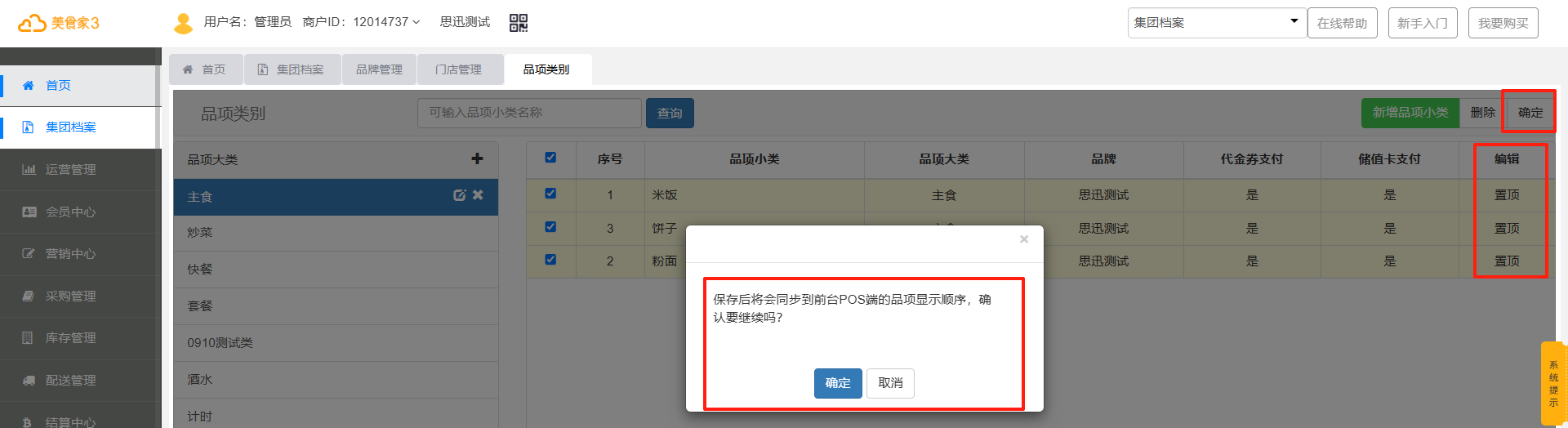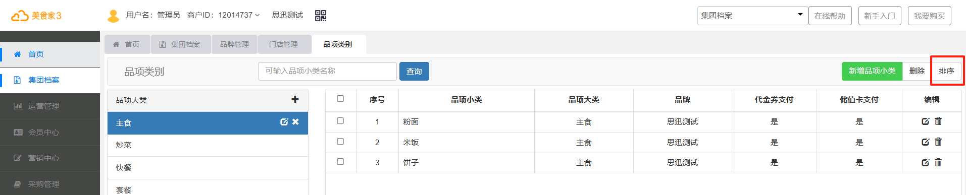 编辑大类设置排序号,排序规则是数字越小越靠前。