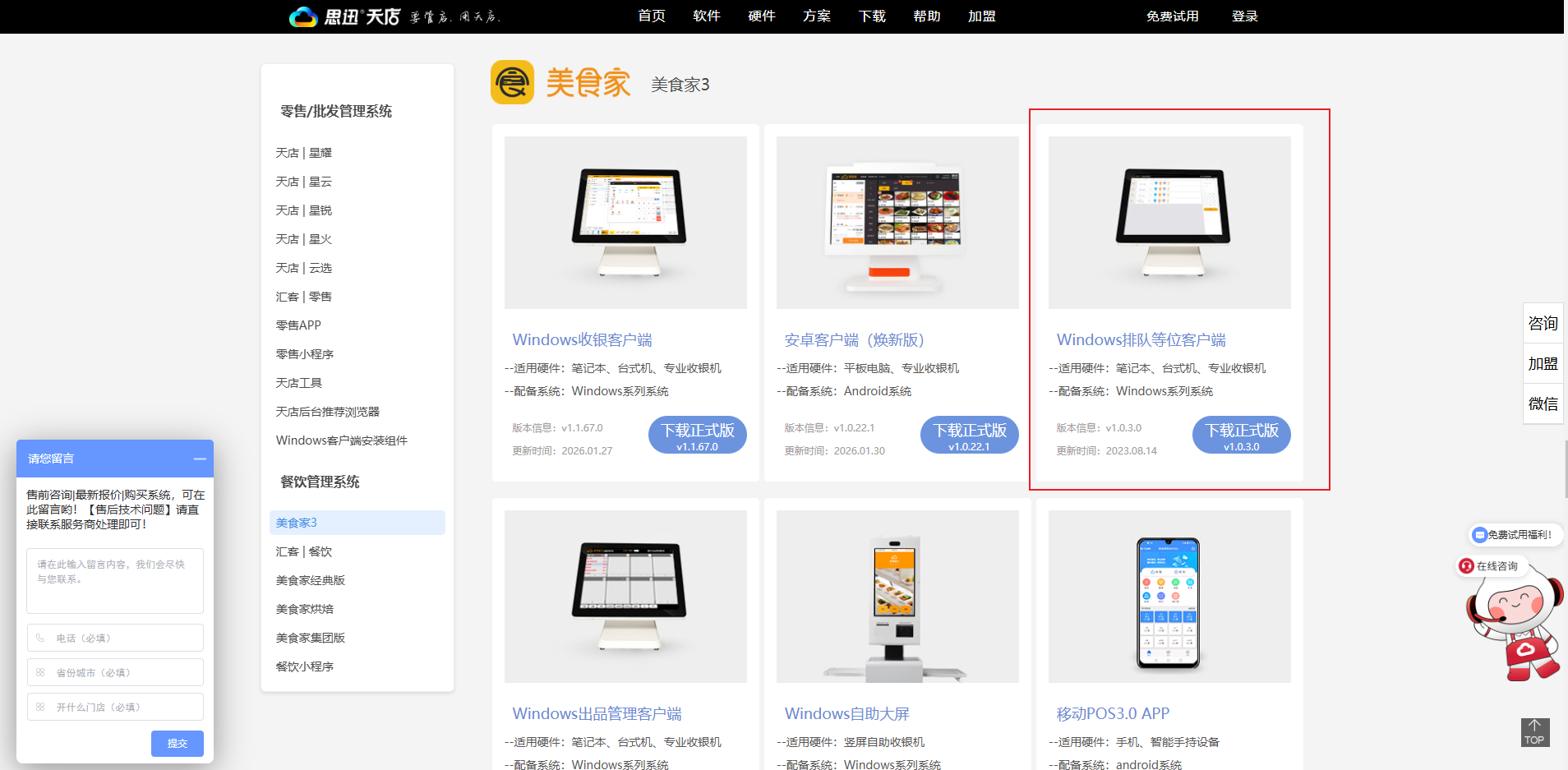 程序路径下载: 〖美食家3〗- Windows排队等位客户端 或者 登录软件后台 点击〖服务中心〗 进行下载操作