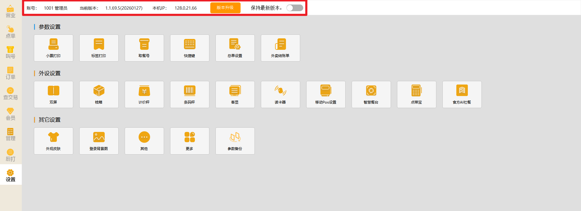 可在此处点击【版本升级】,设置参数:保持最新版本;如开启后每次登录将会检测推送版本提示