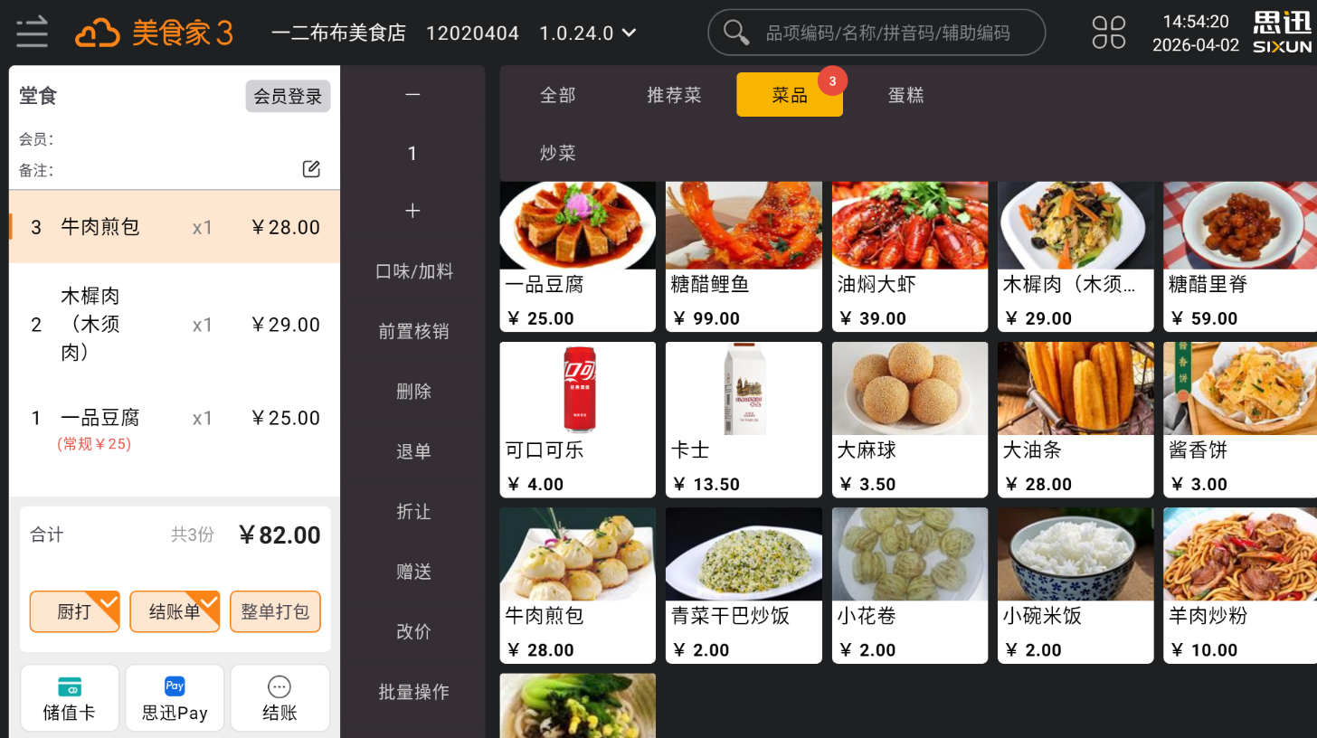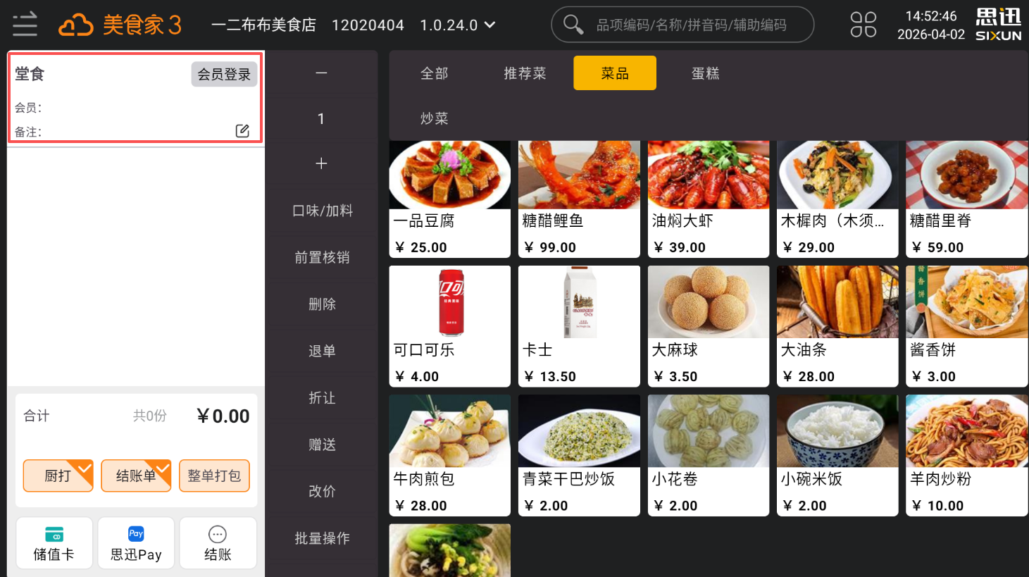 | 存单 | 将已点未结算菜品进行临时保存后,进行下一笔销售操作 |
