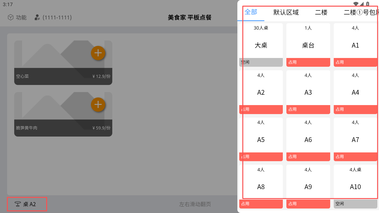 桌台设置:选择需要操作的餐桌。